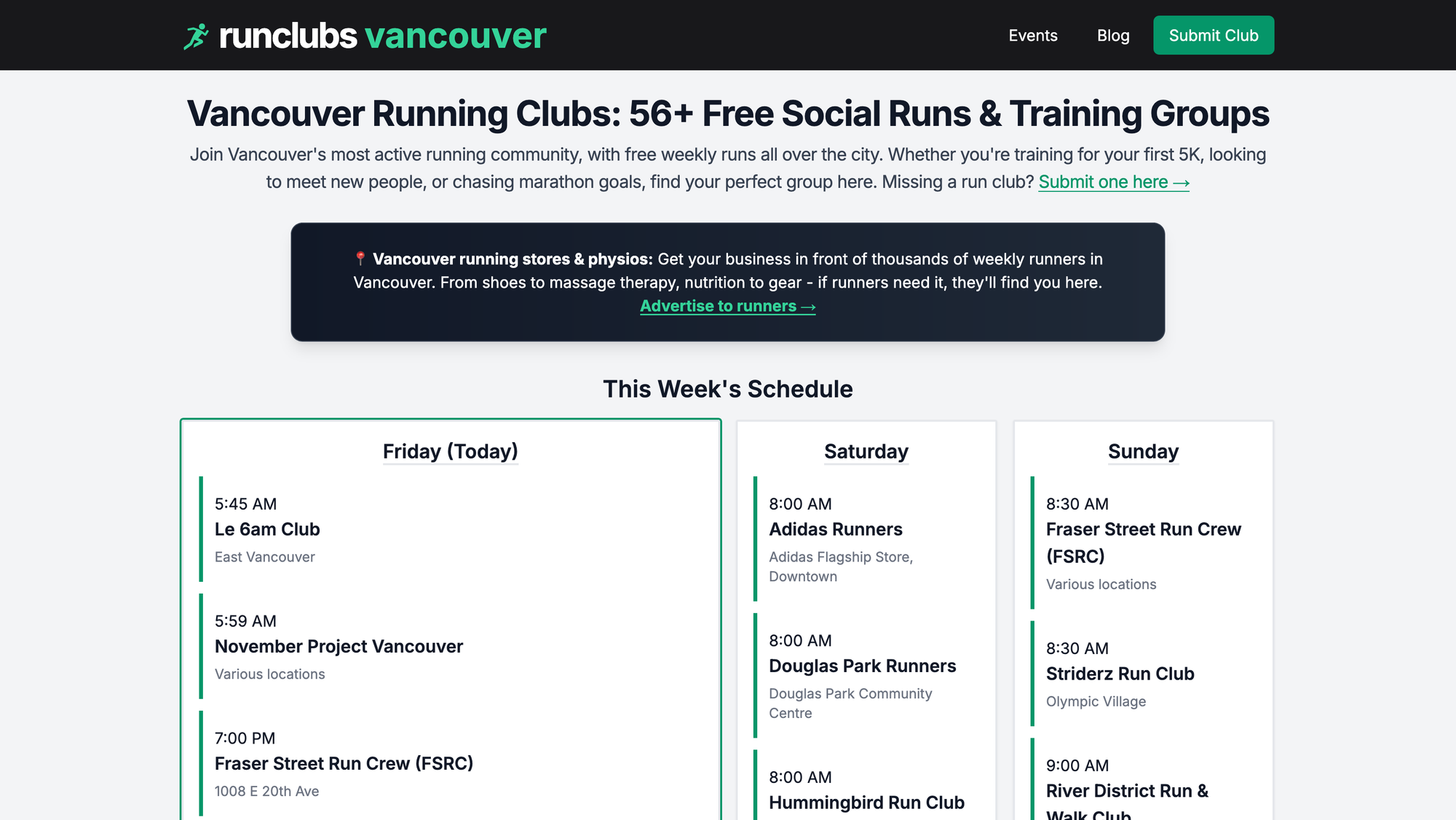 I built Canada's largest and most popular run-club directory — and now I’m trying to figure out how to monetize it. This series documents the experiments I’m running to see whether I can turn this side project into something financially sustainable.