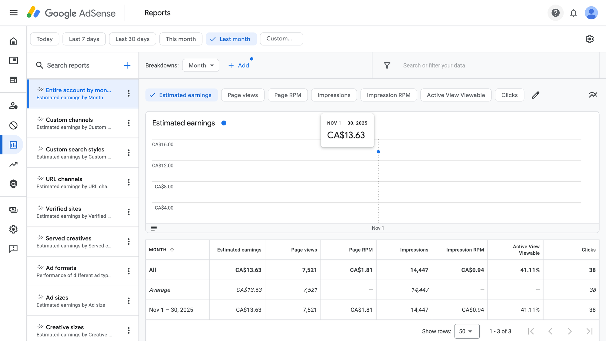 I turned on Google’s auto-optimized AdSense setup. The site gets around 200 users a day — roughly 400–600 pageviews — so based on common AdSense calculators, I expected maybe $10–15 USD per month.